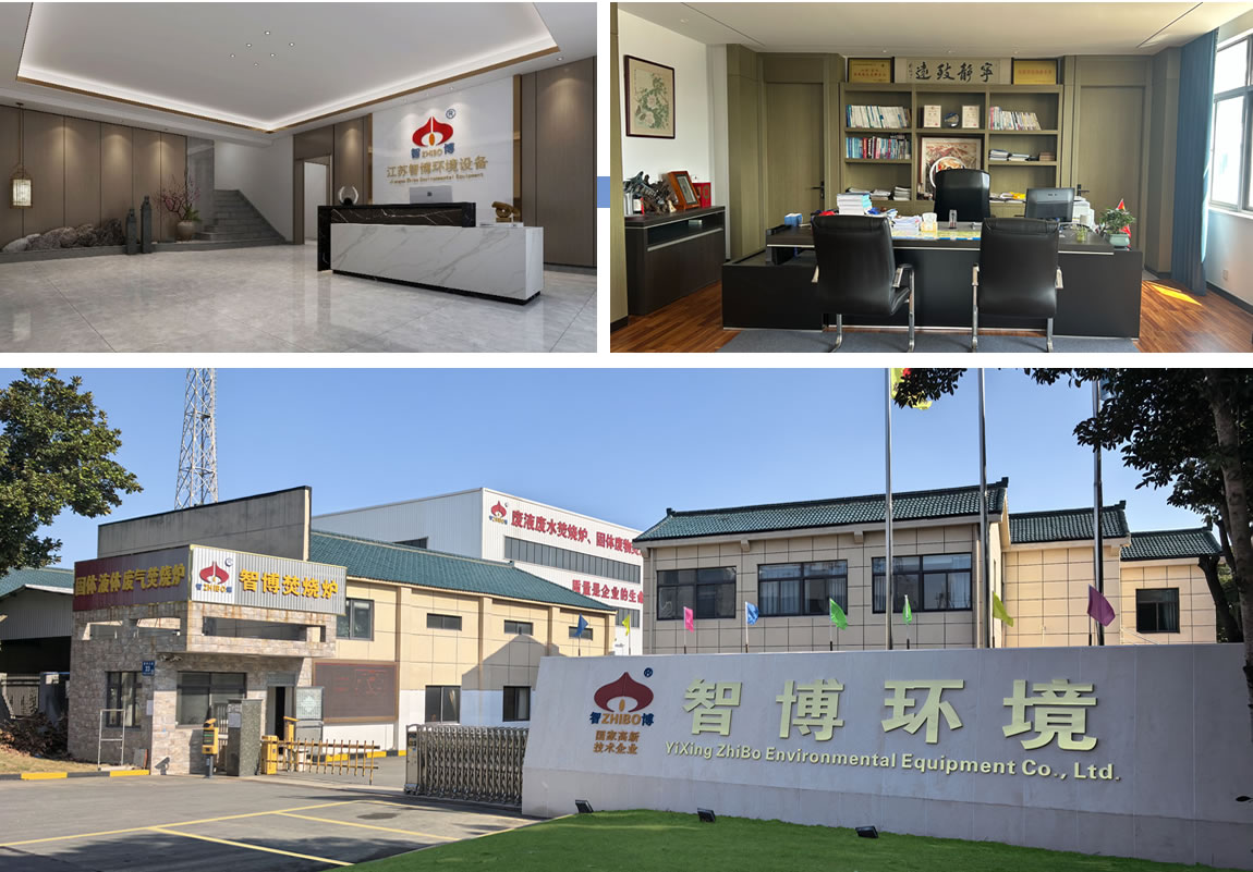Yixing Zhibo Environmental Equipment Co., Ltd(Jiangsu Ruizhibo Environmental Equipment Co., Ltd). has been committed to the research and development, design and manufacturing of incineration equipments for treatment of industrial solid waste, industrial waste gas and waste solution for the past years. With close collaboration with overseas professional companies over the years, the company has been successfully manufacturing incinerator equipments, heat accumulating type thermal oxidization incineration equipments, air pollution control equipments and wastewater treatment equipments; The company also has extensive technical exchanges and cooperation with domestic authoritative research and design institutes for environmental protection; Zhibo people have been always active in the technical innovation with reference to the world advanced technologies and products; through many years of efforts in independent innovation and practice, the company now has relative strong technical strength.In the solid waste incinerator and waste liquid, waste gas incinerator equipment has a number of national invention patents and new practical patent.